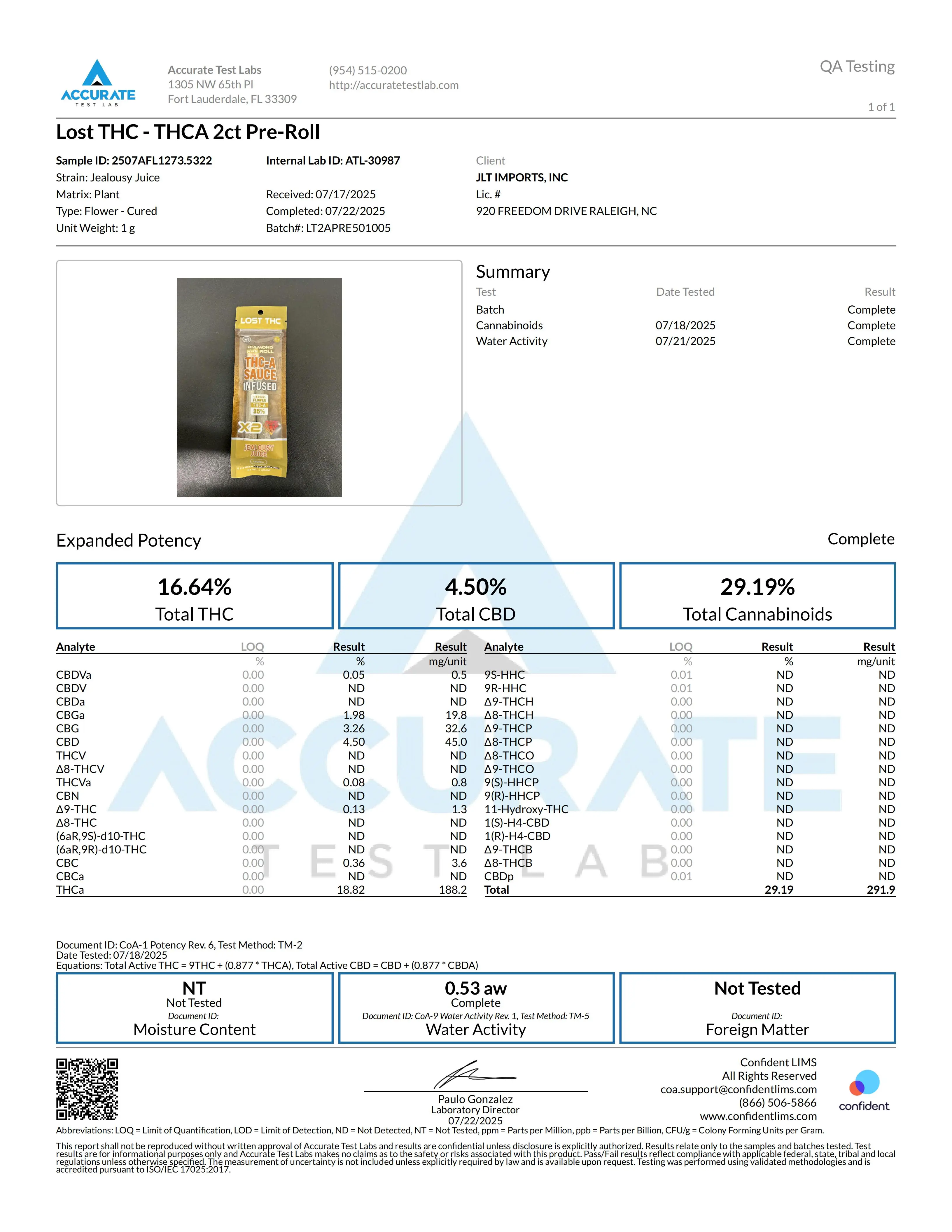 JEALOUSY JUICE - Certificate of Analysis | Lost THC